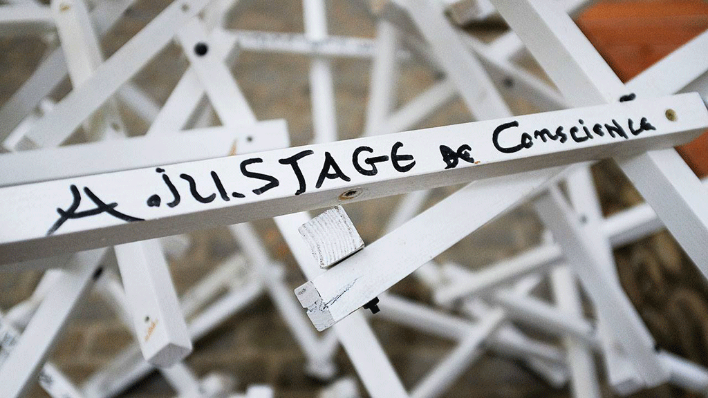 - Description : Les éducateurs et les jeunes ont terminé la peinture des prismes en blanc et ont écrit de nombreux messages recueillis en intranet auprès de toutes les unités de la PJJ en national et ont monté les prismes en modules triangulaires. L'œuvre réalisée par la PJJ a été finalisée par le public lors de l'événement dans le cadre d'une animation PJJ/Un Espace. Les jeunes étaient acteurs et passeurs du concept auprès du public. Plus de 2000 messages ont été recueillis.
